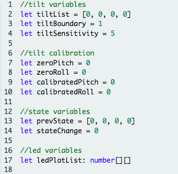 We add a simple function checkState() to check whether the tilt levels have changed from a previous iteration.