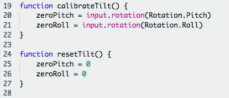 Having completed the bulk of the code, we now add in the calibTilt() and the resetTilt() functions.