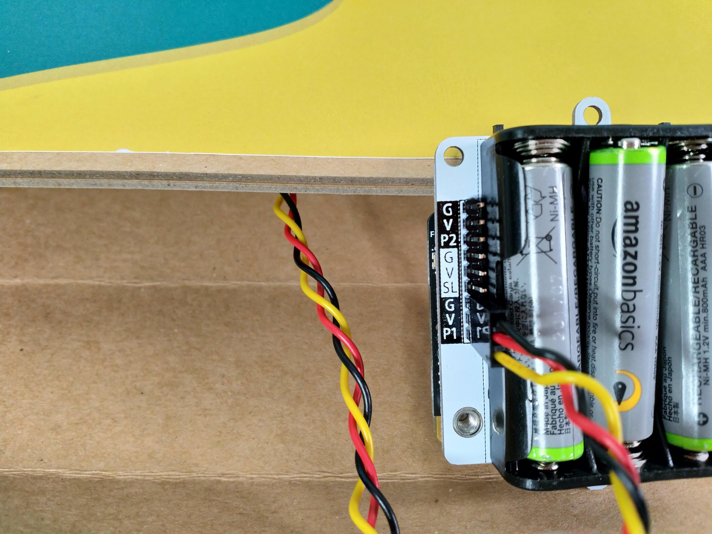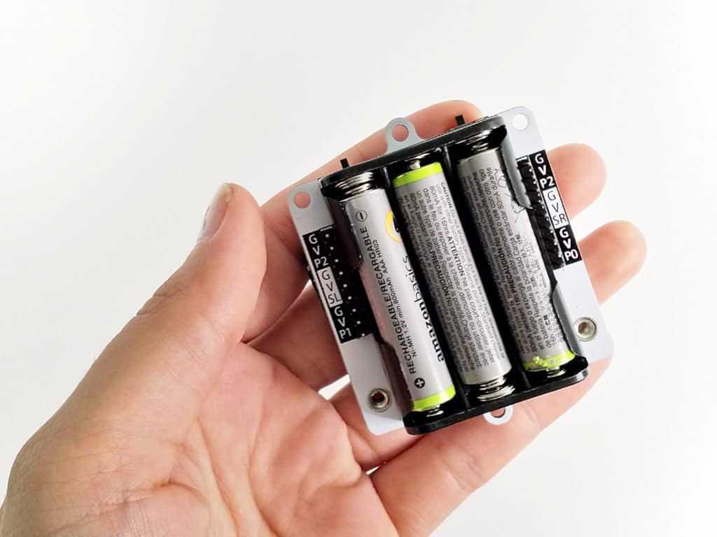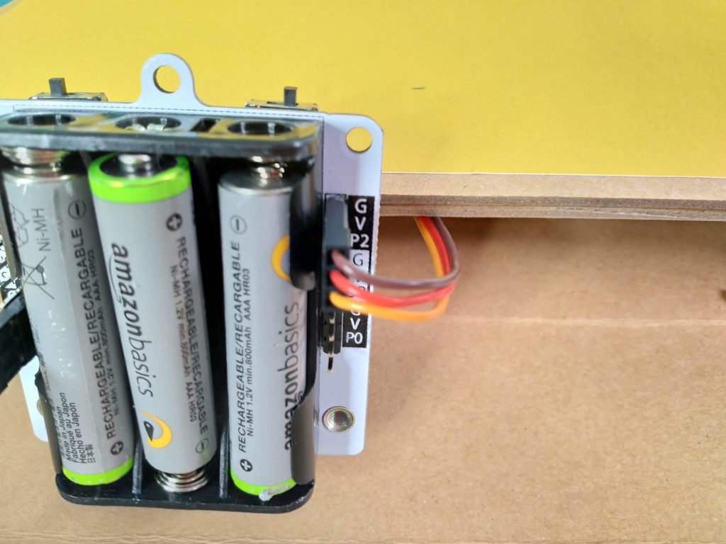 Switch the left switch to P2 and the right switch to OFF. We’ll turn it on after we’ve coded the micro:bit.