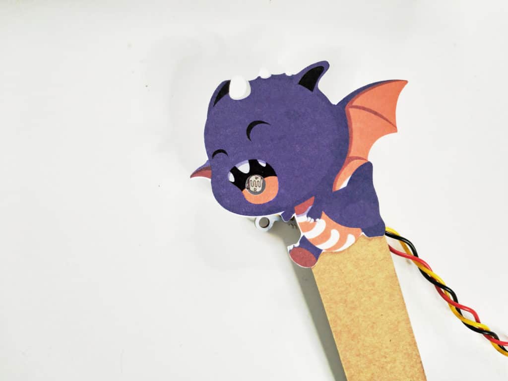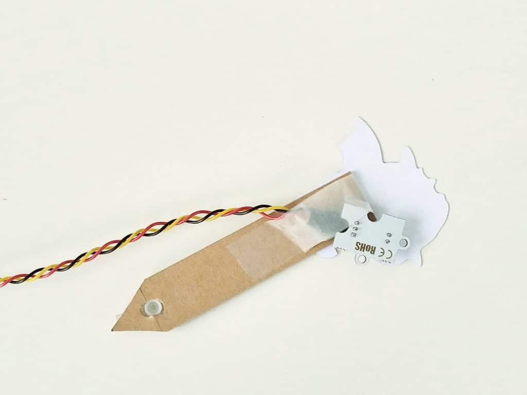 Place the light sensor into the dragon’s mouth and tape it down to secure it.