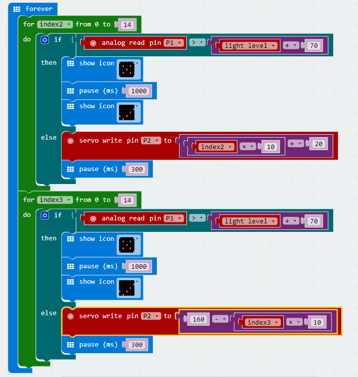On to the light sensor. We’ve got to capture the current light levels and when a laser passes over, the sensor will alert the micro:bit that the light levels has suddenly gone way up.